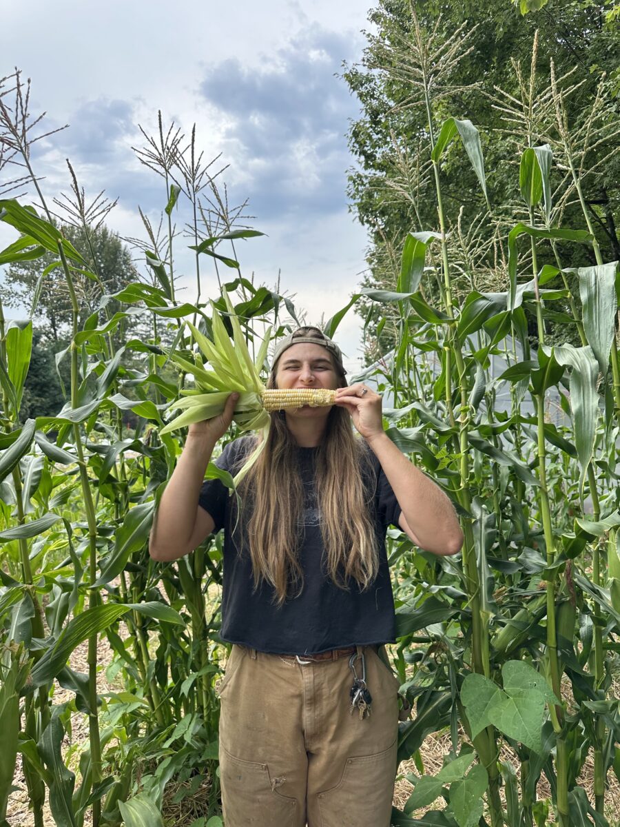 Fiona grew up in the rolling fields and forests of Caledon Ontario, treaty land long stewarded by the Huron-Wendat, Haudenosaunee, Mississauga, and Anishnabek Nations. She has a degree in computer engineering from Queen’s University and worked in the precision agriculture industry as a software developer, automating greenhouses and generating routes for semi-autonomous tractors. Fiona started volunteering with the EGP’s Queen Mary Sharing Garden in 2024, and never looked back! She is delighted to return for her third year with the EGP and second season at Loutet Farm as Project Coordinator 🙂 You can catch her out in the fields nerding out about soil science, thinking of silly puns while writing up the weekly newsletter, or at the farmers’ market chatting about the importance of local food security. When she’s not at the farm, you’ll find her tending to her beehives, fishing at the lake, or hiking in the beautiful Coast Salish mountains.